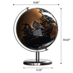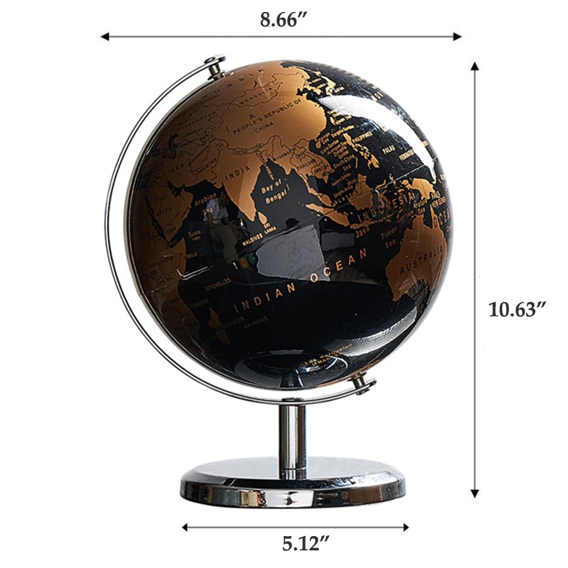 Elevate your space with these stunning desktop globes featuring intricate maps of the Earth's continents, countries, and oceans. Whether used at home, in the office, or in the classroom, these globes are sure to enrich your geographical knowledge and ignite curiosity. With a practical design, each globe is around 8" in diameter and sits securely on a sturdy base for added stability. The sleek and modern appearance of these globes makes them perfect for adorning shelves, desks, or tabletops, adding a touch of sophistication to any room.