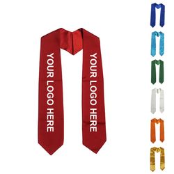 100% polyester fabric shiny satin, light weight,very soft and glossy.Elementary & high school, bachelor degree or used as organization honor stole or clergy choir stole for church activities. At high school and college graduation ceremonies, a graduation dress is essential in addition to the traditional cap and gown. Whether your achievement is academic or non-academic, mark your graduation ceremony with one of our graduation stoles.Ensure your ceremonies stand out with sophistication and comfort, courtesy of our exquisite graduation stoles. Measured 60.00"*3.74". Red,green,blue,white,orange,gold and dark blue colors for your choice. Customize your logo or brand name on the front to boost your brand awareness! Shipping via sea for the last price tier.