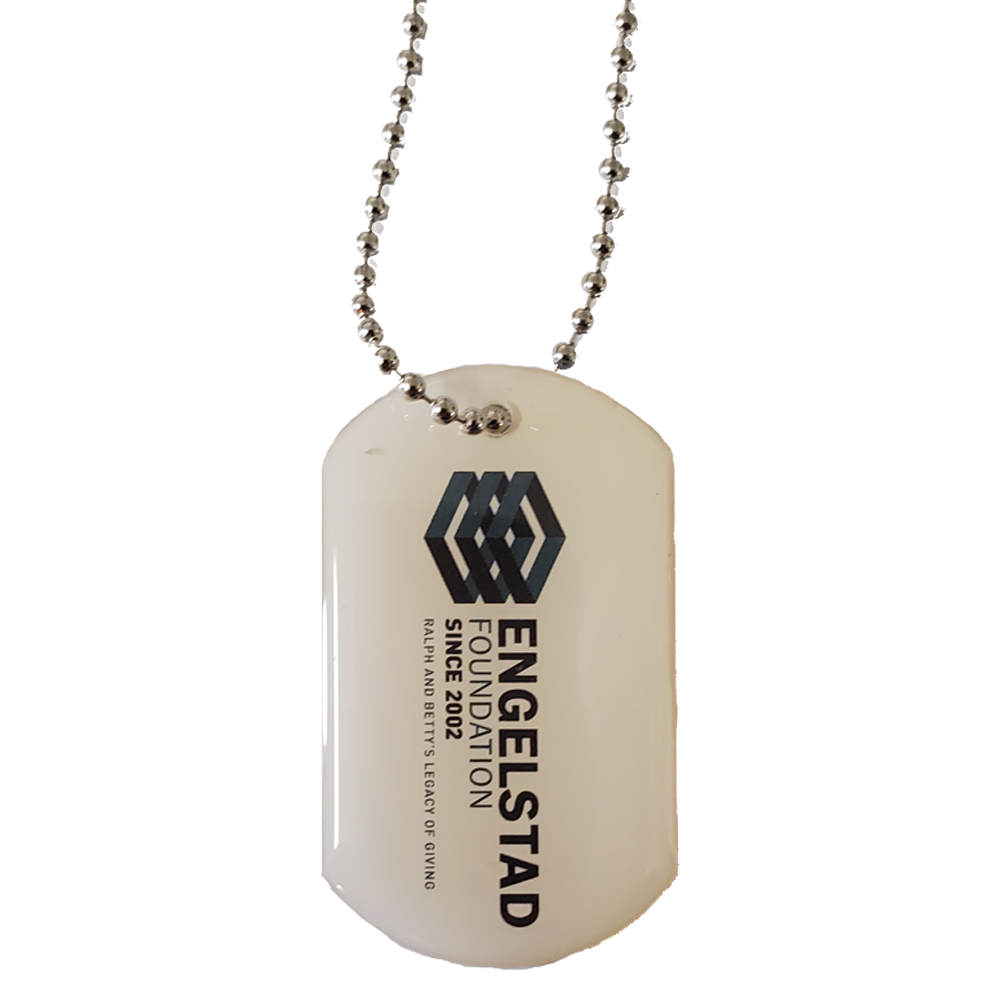 Our custom Dog Tags are lightweight and have no metal or aluminum and a 1.2” x 2” full color domed imprint.