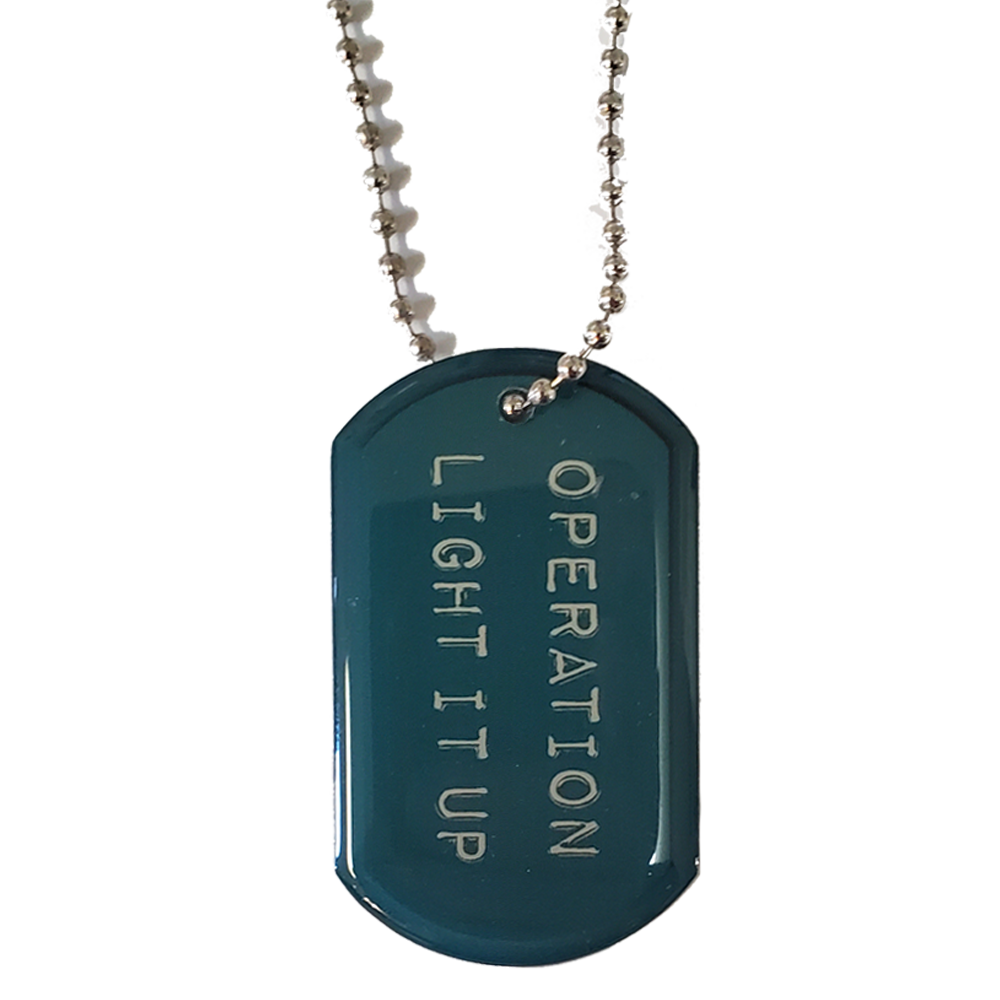 This single sided dog tag pendant comes with a 24" or 30" ball chain necklace attachment.